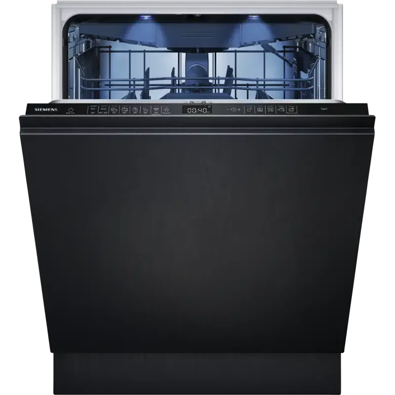 Built-in dishwasher, fully integrated, varioHinge, 8 washing programs, delayed start, dosing assistant, automatic detergent dispenser (automatic detection of the detergent used), remaining time display, height-adjustable upper basket (3 levels), cutlery drawer, Vario (with extra space for small items, etc.), EmotionLight (blue LED lighting inside), AquaSense water sensor (saving water and energy), automatic drying AutoOpen (automatic door opening at the end of the program), openAssist (handle-free door opening), self-cleaning filter, IQdrive motor (brushless, efficient, durable and quiet), AquaStop, Home Connect (control via smartphone or tablet), app control, energy efficiency class A, Go Green certified, width: 59.8 cm, height: 81.5 cm, depth: 55 cm